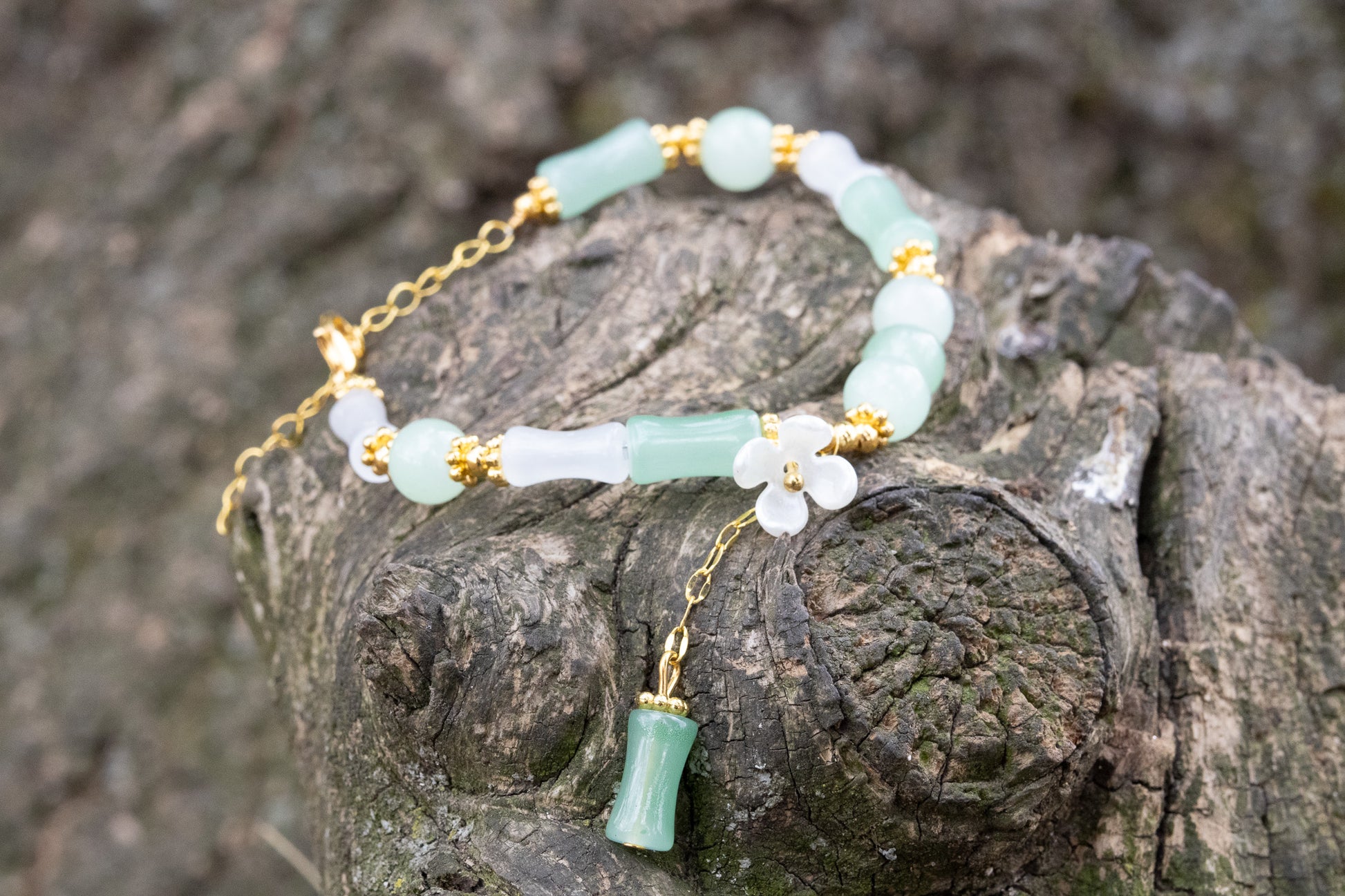 Elegant and timeless, the Cheong-ok Bloom Bracelet is inspired by the serene beauty of Korean jade (청옥, Cheong-ok) and delicate floral motifs. The soft green beads symbolize harmony, balance, and renewal, while the gold accents and translucent flower charm add a touch of refinement. Designed for those who appreciate subtle luxury, this bracelet brings a sense of peace and elegance to any occasion.