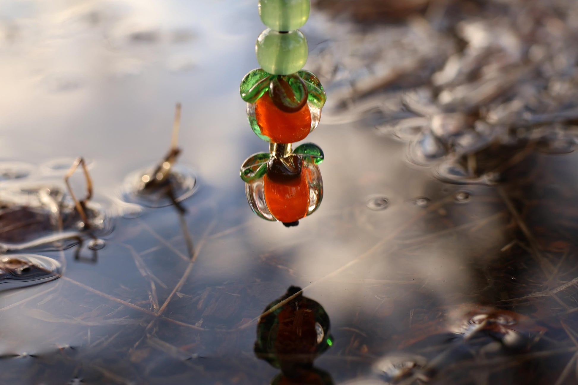 Add a burst of color and charm to your everyday look with this adorable persimmon-inspired accessory! 🍊✨ Handcrafted with vibrant orange and subtle green glass beads, it evokes the sweet, refreshing appeal of fresh fruit. Whether you attach it to your keys, phone, or favorite bag, this unique piece adds a touch of playful elegance wherever you go. 🍃✨